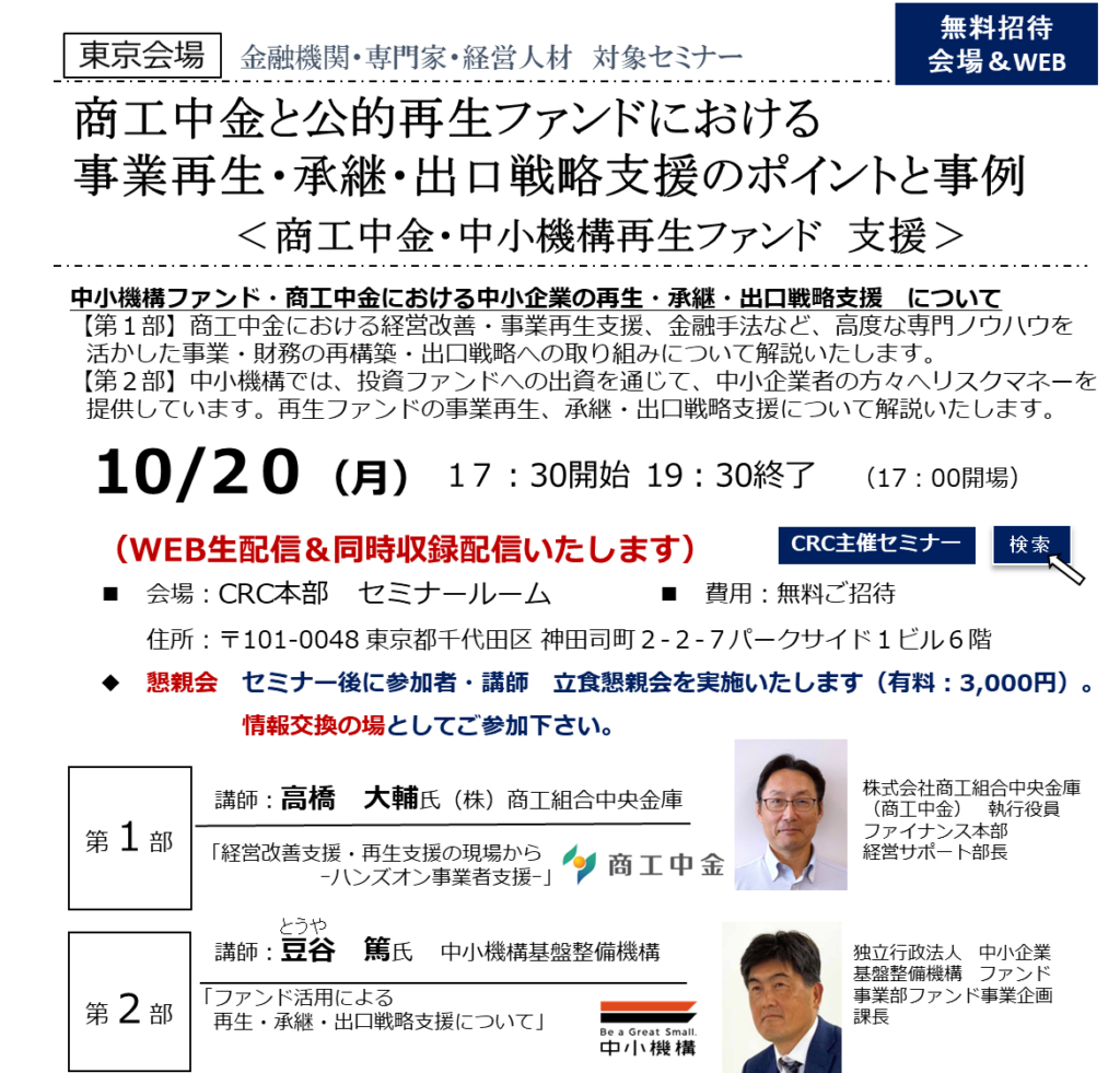 商工中金と公的再生ファンドにおける事業再生・承継・出口戦略支援のポイントと事例(東京&WEB)